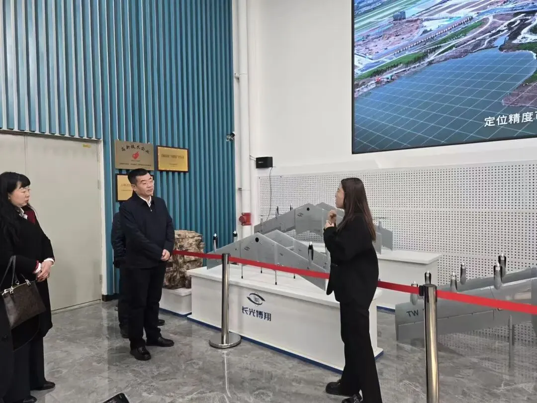 随后,调研团队前往长春长光博翔无人机有限公司,先后参观企业无人机生产线及产品展示区,近距离了解纯电动、油电混动系列无人机及无人自动化机巢的研发、生产全流程,详细记录企业技术研发、专利成果、质量管理、产业应用等核心信息,进一步丰富蓝皮书编撰的实证素材。在座谈交流中,双方围绕低空经济人才培养、产业发展规划、产学研合作等内容展开深入探讨,既为蓝皮书编撰积累了翔实的产业数据和实践案例,也就专业课程体系优化、实训基地搭建、产学研合作模式等方面交换意见,进一步拓宽了校地企协同育人的合作路径,为后续深度合作奠定了坚实基础。