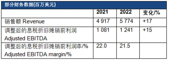 ● 调整后的息税折旧摊销前利润约为12亿美元,同比增长15% 诺力昂发布了2022年全年业绩,销售额约为58亿美元,同比增长17%,主要得益于产品价格上涨。扣除了外汇的影响后,销售额增长24%。经调整后的息税折旧摊销前利润同比增长15%,得益于贯穿全年的强劲价格上涨。同时,部分价格上涨也被原材料、能源、物流,以及销售费用、行政和管理费用(SG&A)带来的巨大成本以及来自外汇的显著影响所抵消。 诺力昂董事长兼首席执行官Charlie Shaver表示:“2022年全年财务业绩凸显了我们的特种产品组合在充满挑战的宏观环境中的韧性。2022年,我们的定价大幅上涨,抵消了2021年和2022年的原材料成本的不利影响。这些定价举措推动了我们调整后的EBITDA的强劲增长。” 高性能解决方案业务部的全年销售额总体增长20%,至约41.5亿美元。调整后的息税折旧摊销前利润增长22%,达9.22亿美元。销售额增长的推动因素是整个公司的定价上涨,以及自然资源和田园生命业务线的强劲增长。高性能解决方案业务部调整后的息税折旧摊销前利润率为22.2%。 技术解决方案业务部的全年销售额总体增长11%,超过16亿美元,主要受益于聚合物特种化学品和可再生纤维业务线定价上涨的推动。销售价格完全抵消了原材料和能源成本的上涨,调整后的息税折旧摊销前利润增长3%,至3.35亿美元。技术解决方案业务部调整后的息税折旧摊销前利润率为20.6%。 2022年,诺力昂因其可持续发展成就获得了全球最大的商业可持续发展评级提供商EcoVadis的铂金评级,其得分在参与EcoVadis评级的所有公司中排名前1%。2022年的另一个可持续发展亮点是诺力昂在五个位于巴西的生产基地实现了碳中和。 诺力昂在2022年继续投资于增长机会,包括收购新加坡的烷氧基化工厂,以更好地满足东南亚不断增长的需求,以及收购波兰的ADOB公司(于2023年1月完成)以扩大诺力昂的作物营养产品线。▍来源:诺力昂