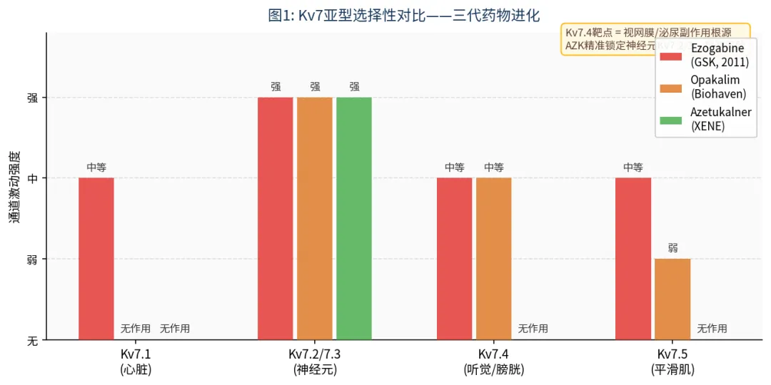 图1: Kv7亚型选择性对比——三代药物进化