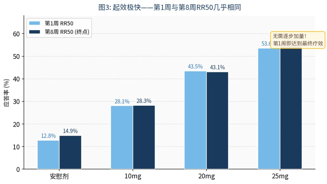 图3: 第1周与第8周RR50几乎相同,无需逐步加量