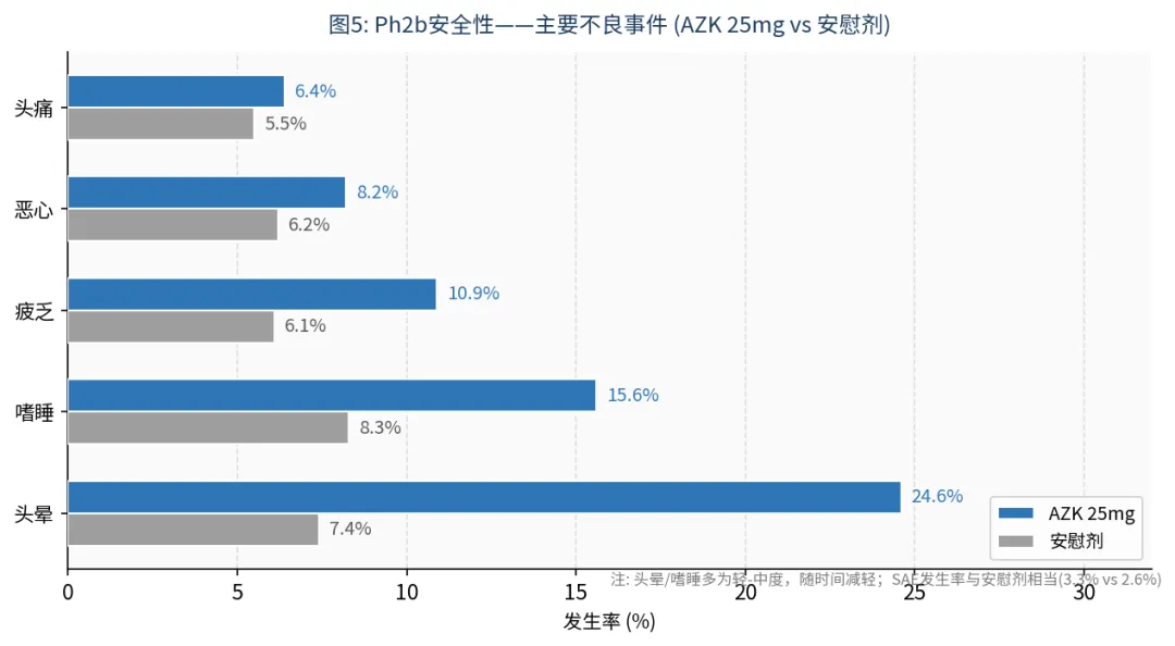 图5: 主要不良事件发生率 (AZK 25mg vs 安慰剂)