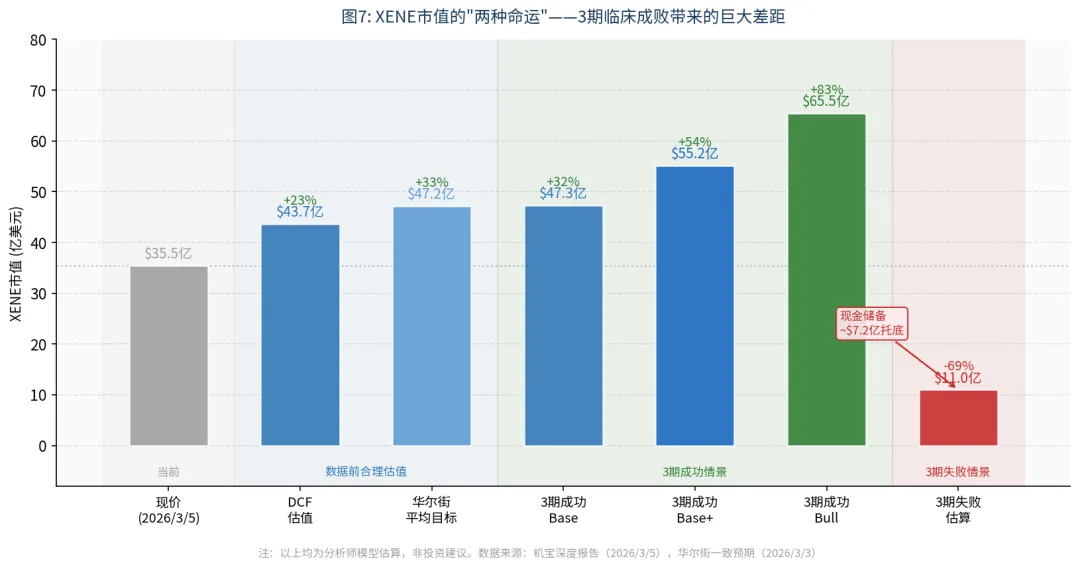 图7: XENE市值的两种命运——3期成败带来的巨大差距 [1][4](不构成投资建议)