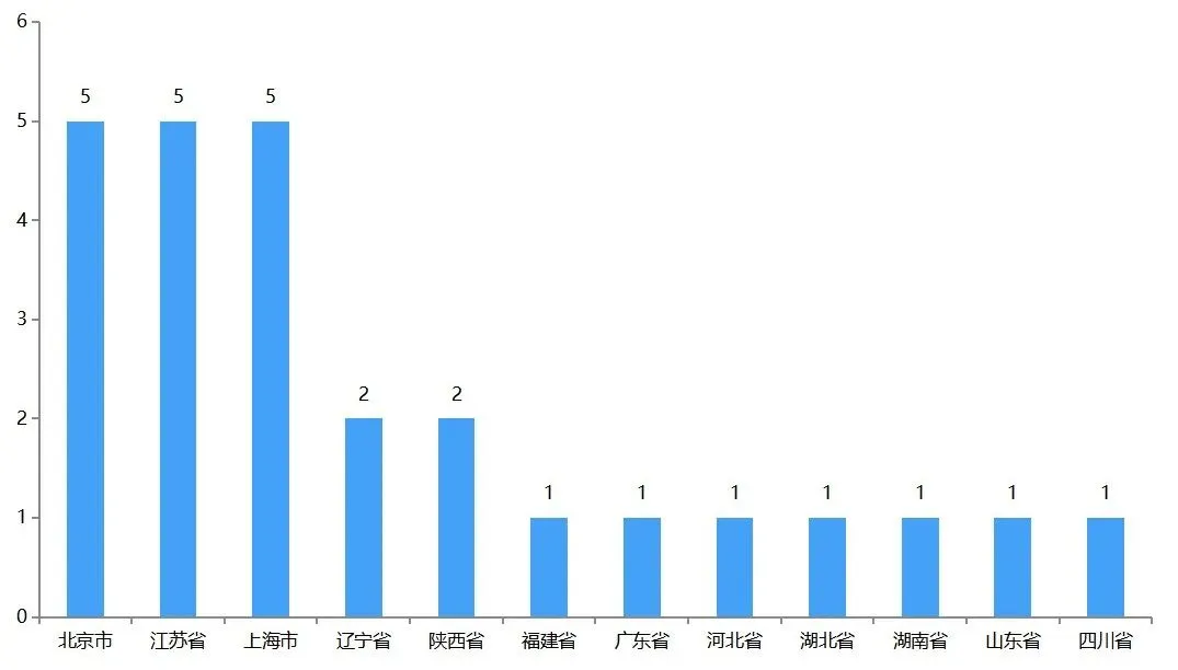 同时,本报告总结了以上企业的地理位置分布情况,如下图所示,企业分布前五位的为上海、北京、江苏、黑龙江、广东省。凑够分布图中可以看出,燃气轮机产业链主要企业主要集中于东部沿海地区以及经济发达的一二线城市和省会,这些城市具有较强的经济优势和人才质量,同时也可以接收到较为可观的政府资金支持。