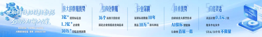 企业战略决策进入新市场、调整产品线,往往都需要基于准确、及时的市场趋势分析。传统的行业报告往往滞后数月,而世舶科技招投标数据API提供的3亿+实时历史数据,正是洞察行业动态的最佳窗口。(文末阅读原文)
