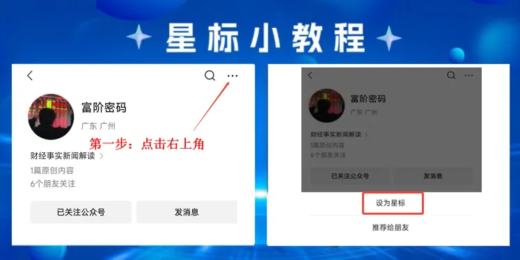 现在微信公众号功能改了,在公众号主页将公众号设为星标,同时点右下角的“推荐”,这样就可以第一时间收到文章了!