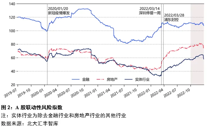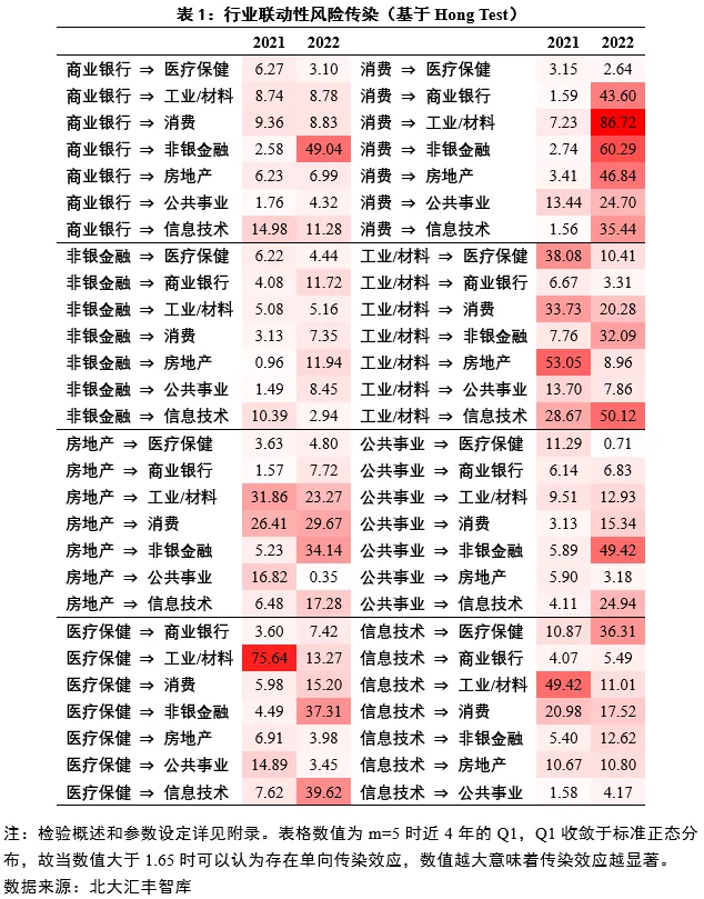 可以认为,消费、房地产、非银金融行业形成的风险溢出循环对2022年行业联动性风险的普遍升高存在重要影响。
