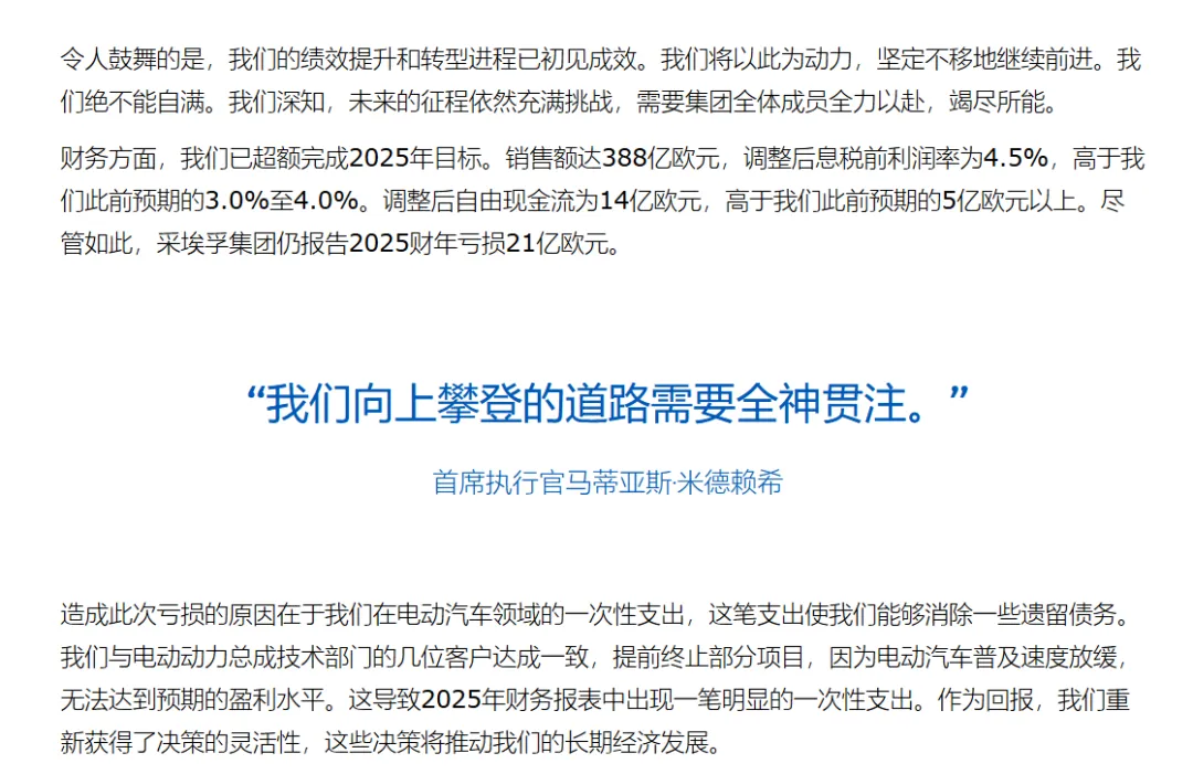 102亿欧元债务压顶、2028年底前裁员1.4万人、16亿欧元电动化项目减值……采埃孚CEOMathias Miedreich(后称米德莱希),在一份声明中表示: