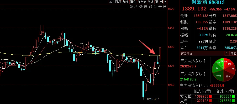 目前创新药板块指数已放量突破了60日线,中长线趋势有望扭转。
