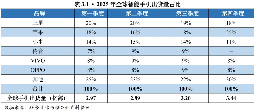 2025年全球智能手机CR6占比约70%,集中度较高,但呈多元化竞争格局。