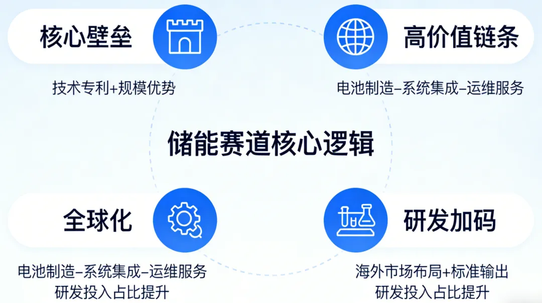 反观中小企业,大多缺乏持续的研发投入,无法实现技术迭代,只能在低端市场挣扎,最终被行业淘汰——这也印证了:在储能赛道,研发投入是“护城河”,也是占据高价值链条的“关键钥匙”。储能“赢麻了”的真相,未来布局核心启示