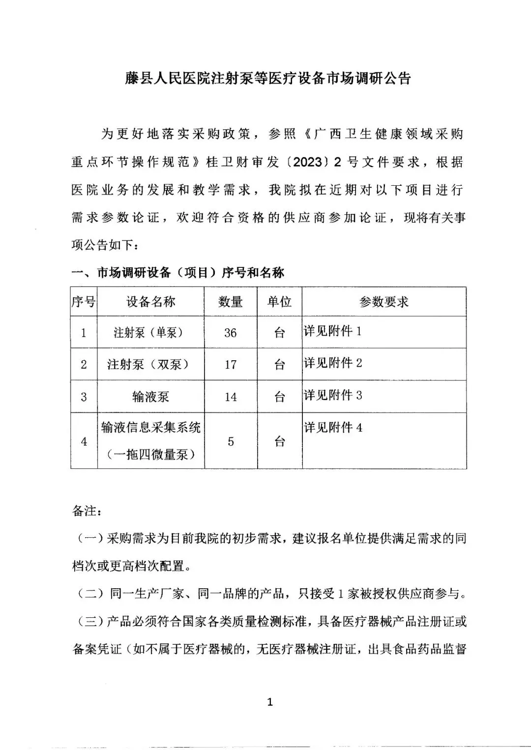 藤县人民医院注射泵等市场调研产品推荐书.docx