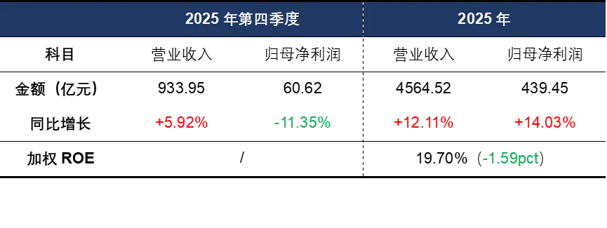 美的集团年报显示,2025年营收4564.52亿元,同比增长12.11%;归母净利润439.45亿元,同比增长14.03%。单看第四季度,营收同比下滑5.92%,归母净利润同比下滑11.35%。第四季度的业绩比我之前设想的要弱一些,之前三季报发布时,我觉得四季度能保持与三季度类似的收入正增长,但最终的成绩是负增长。不过,这份成绩单已经比市场这几天的悲观预期好太多了。