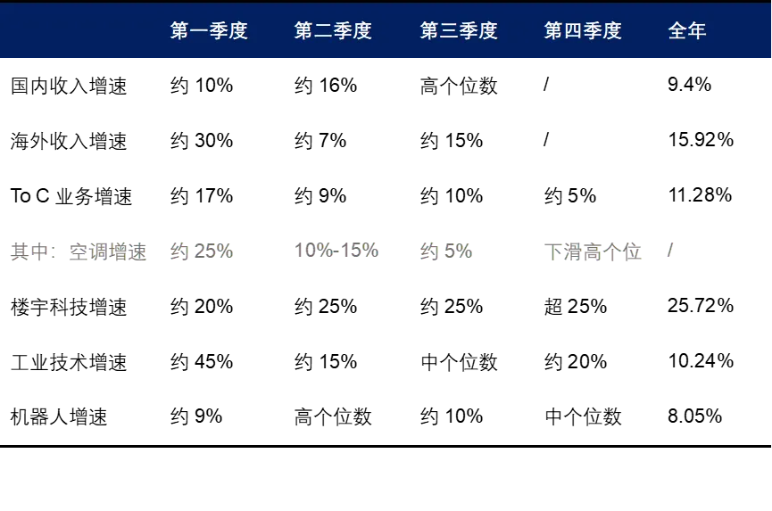 总的来看,2025年美的To C业务的情况是,国内市场地位非常强悍、跑赢市场,海外增速快于国内,海外品牌及制造基地的布局日益完善,但国内高端品牌增速趋势存在隐忧,需留意。