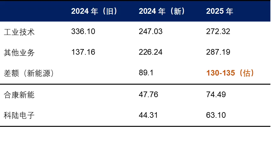 而根据年报的表述,美的集团新能源业务子公司主要就两家:合康新能、科陆电子,这两家公司都是美的集团的并表子公司,两家公司2024年的合计营收为92.07亿元,略高于89.1亿元的原因极大概率是存在一些内部交易的抵消。简单来说,合康新能或者科陆电子将产品卖给美的集团,美的集团的报表上不会把这部分收入列入合并报表,但两家子公司会列为收入。