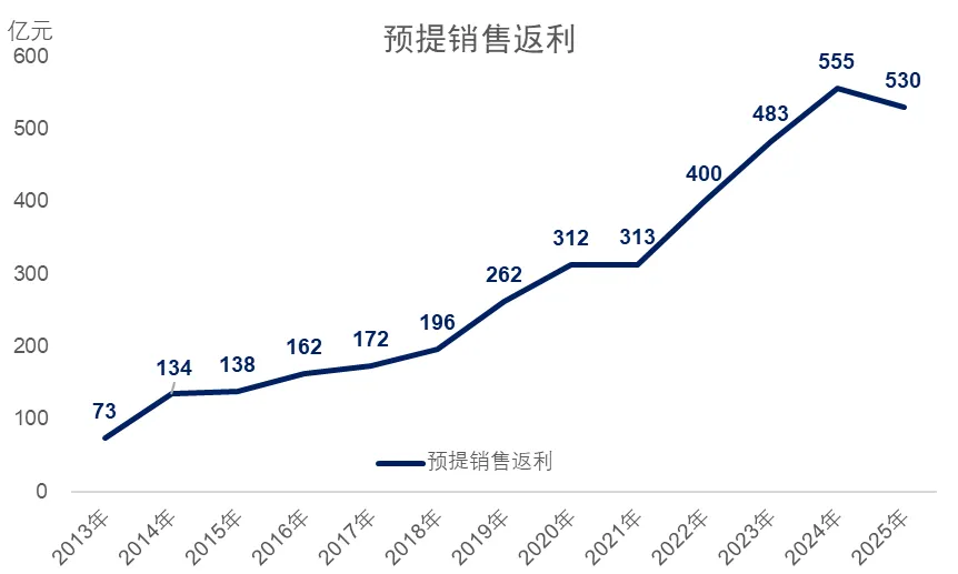 (3)其他流动负债中,给经销商的预提销售返利在2025年出现了下滑,这部分金额从2024年底的555亿元下滑至2025年的530亿元,也是非常罕见的下滑。这部分金额的本质类似于合同负债,美的集团收到经销商货款后,会有一部分在经销商账面上以“代金券”的形式存在,第二年提货时可以抵扣。2025年底的“预提销售返利”也会大概率在2026年被确认为收入。