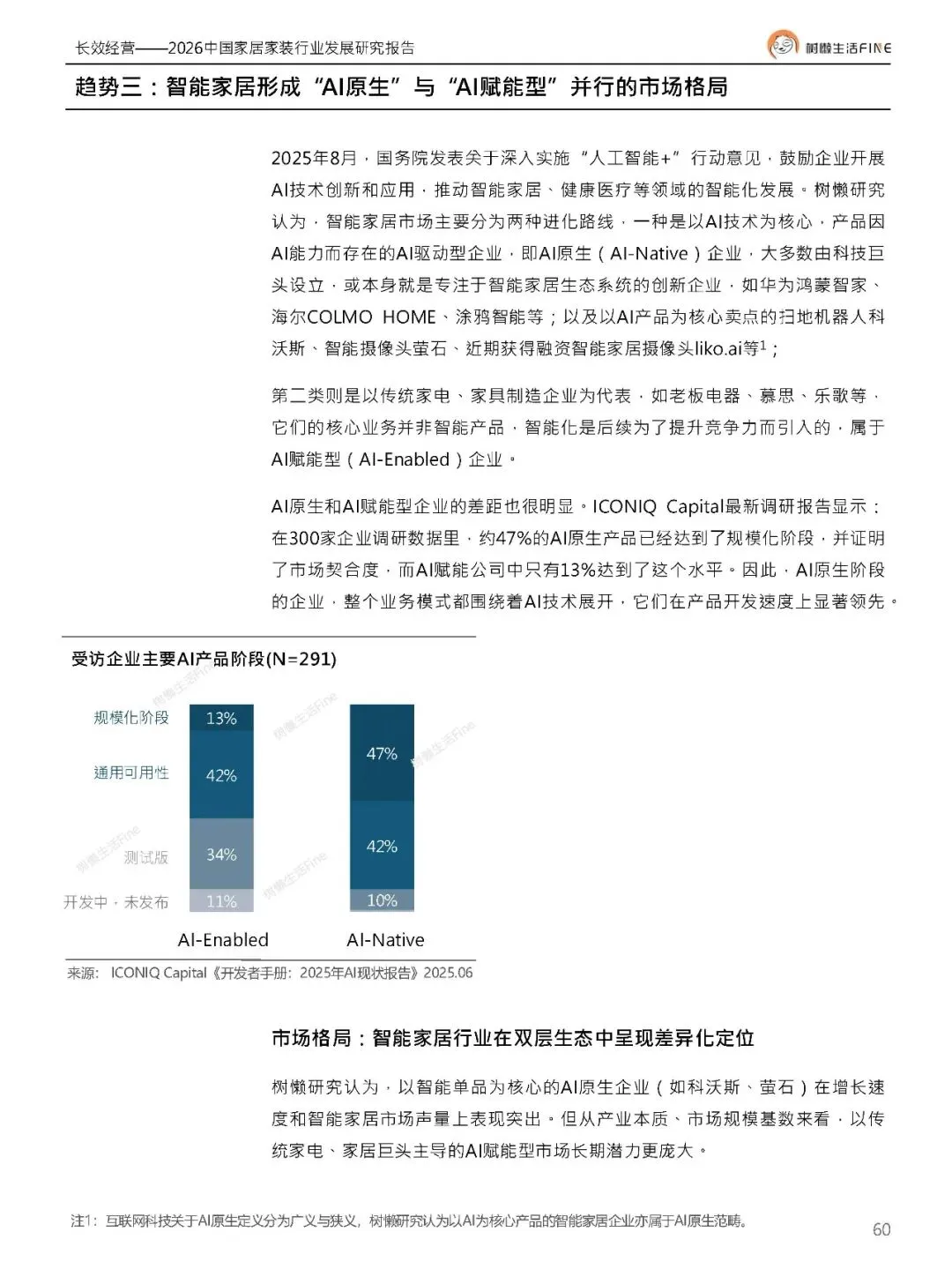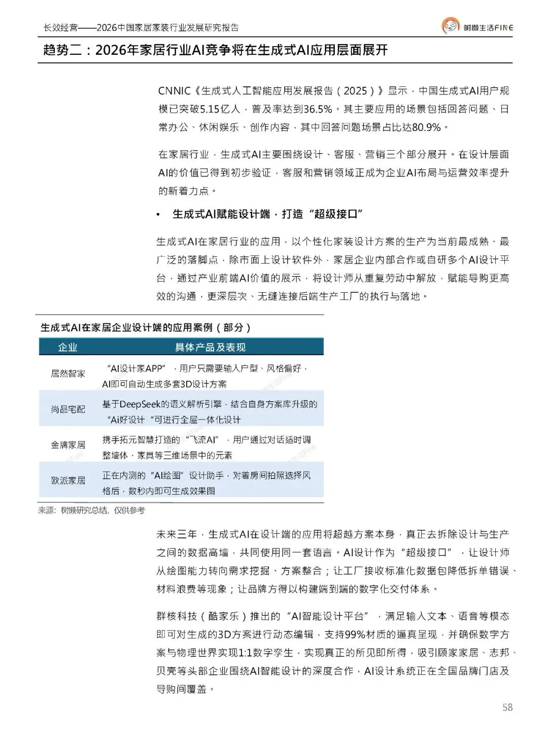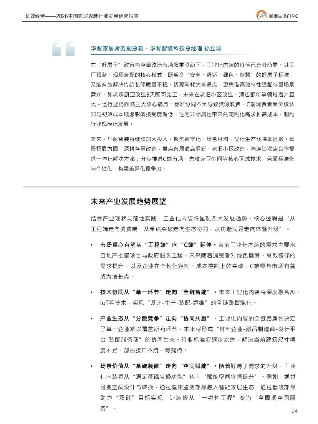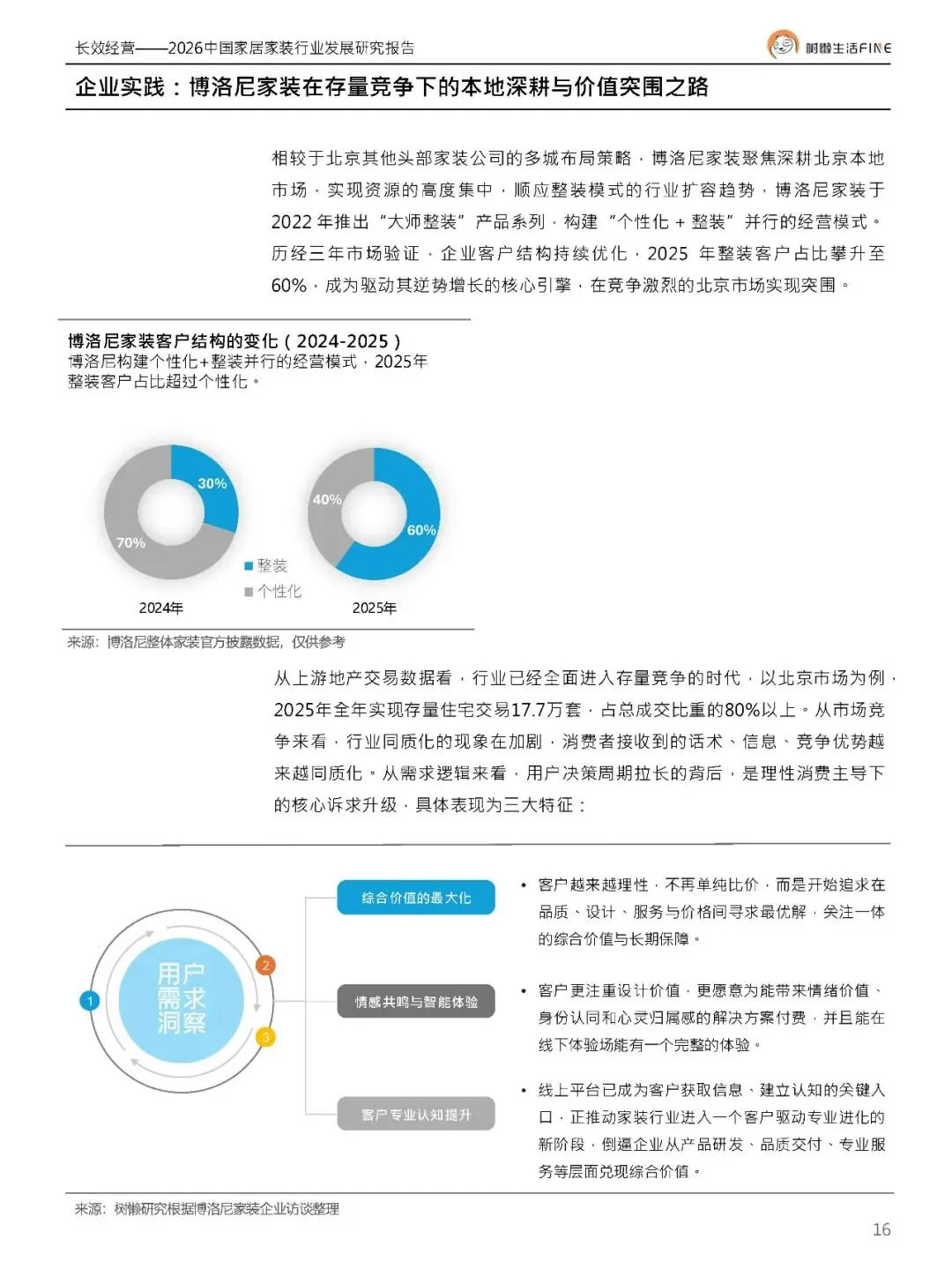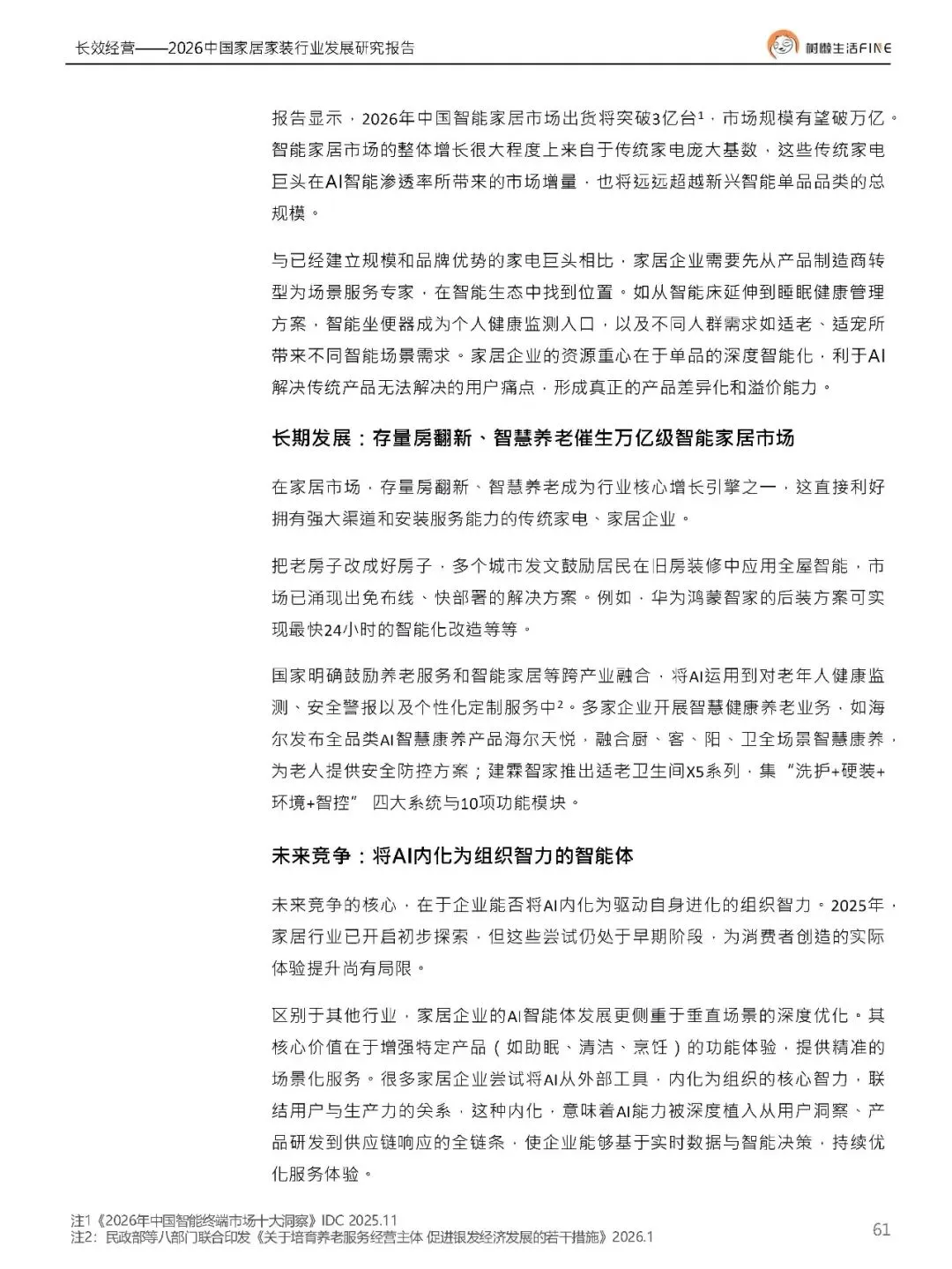 与之相对的,是人口结构变化催生的新需求格局。截至 2025 年底,我国 60 周岁及以上老年人口达到 3.23 亿人,占总人口比重 23.0%,65 周岁及以上老年人口 2.24 亿人,占比 15.9%。老龄化进程直接推动居家适老化改造需求的升温,数据显示,9.03% 的家庭对适老化改造有强需求,30.56% 的家庭改造需求强度为中等偏强,还有 45.14% 的用户处于观望状态。Z 世代群体逐步进入置业阶段,成为家装消费新主力,独居生活、宠物友好、居家办公等多元化居住需求,正在重塑行业的产品供给逻辑。