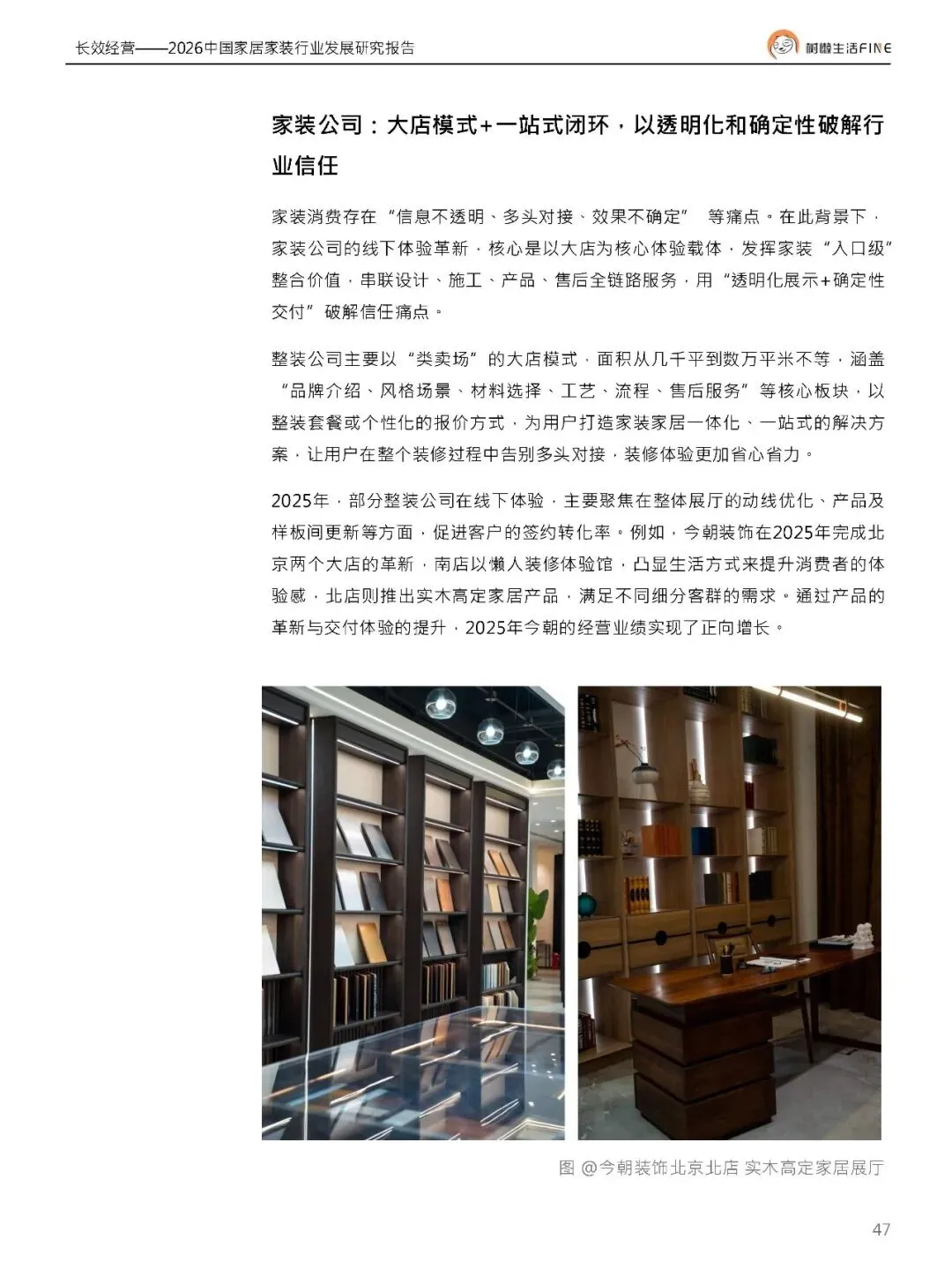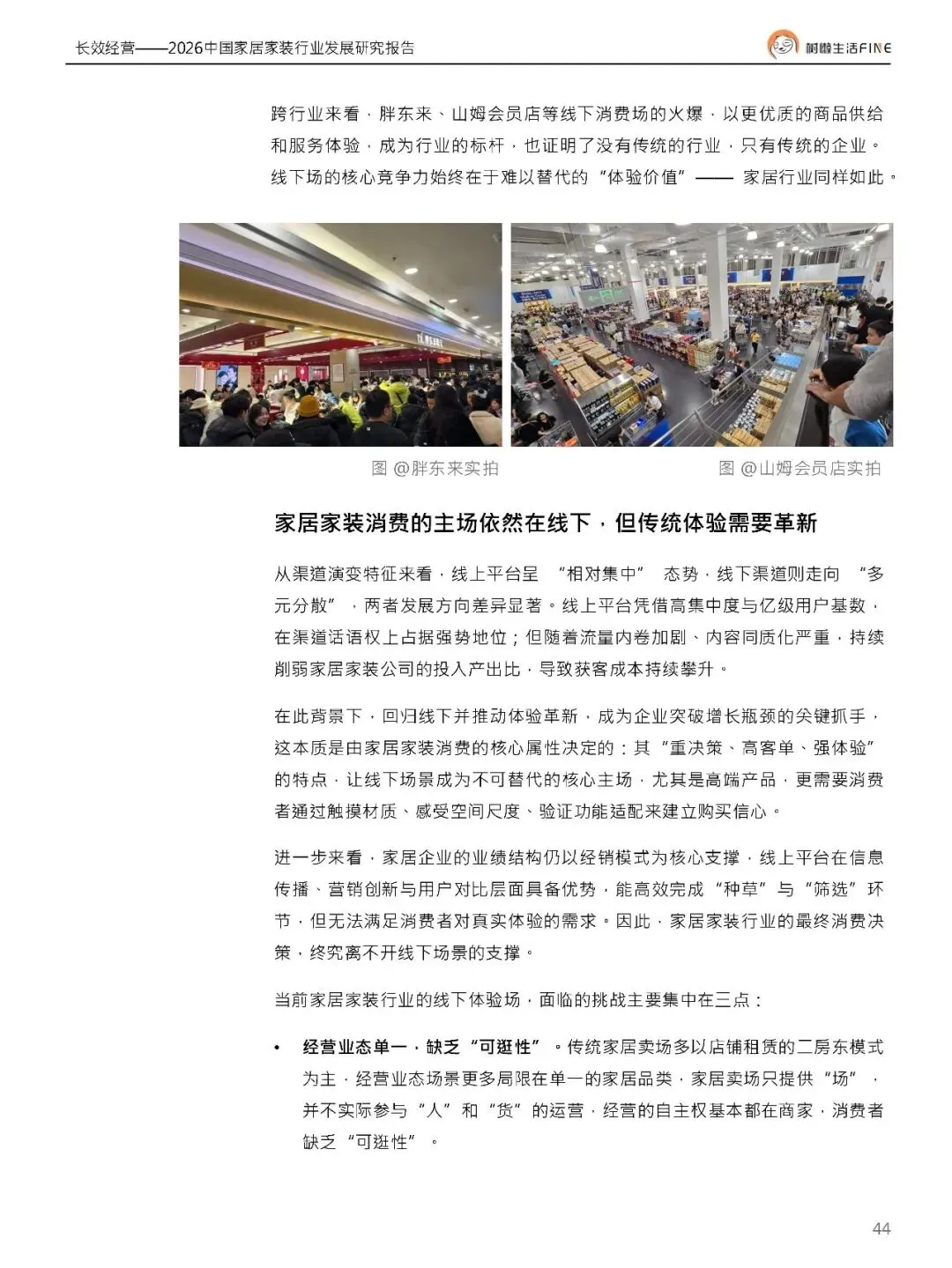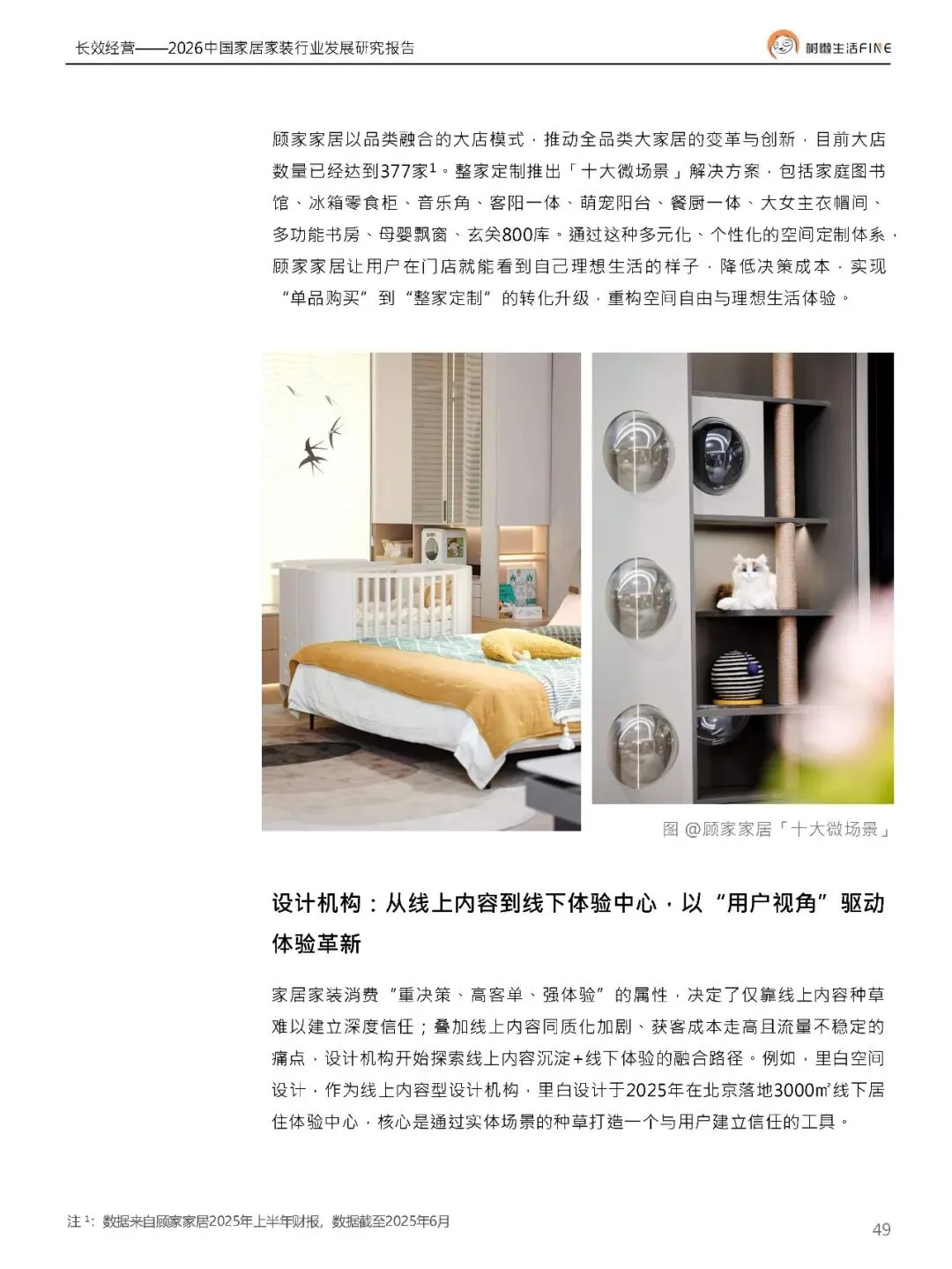 家居家装消费的主场始终在线下,但传统的线下体验模式正在经历全面革新。传统家居卖场,经营指标持续承压,2025 年两家企业的卖场总数量,较 2022 年的高峰已经减少 116 家。行业线下体验的核心逻辑,正在从以产品为中心,转向以用户为中心,家居卖场不断打破业态边界,家装公司重构一站式体验闭环,品牌零售门店推进品类融合与场景化展示,整个线下渠道的形态,正在朝着多元化、复合化的方向持续演变。