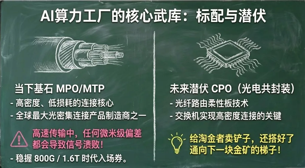 2. MPO/MTP:AI算力工厂的“标配”在英伟达推崇的AI Factory架构中,高密度、低损耗的光连接网络是标配。太辰光是全球最大的光密集连接产品制造商之一,其MPO/MTP连接器是数据中心光互联的核心部件。这种产品看似不起眼,但在高速信号传输中,任何微米级的偏差都会导致信号溃败。太辰光在亚微米级精密加工上的积淀,让其在800G甚至1.6T时代的“入场券”握得很稳。