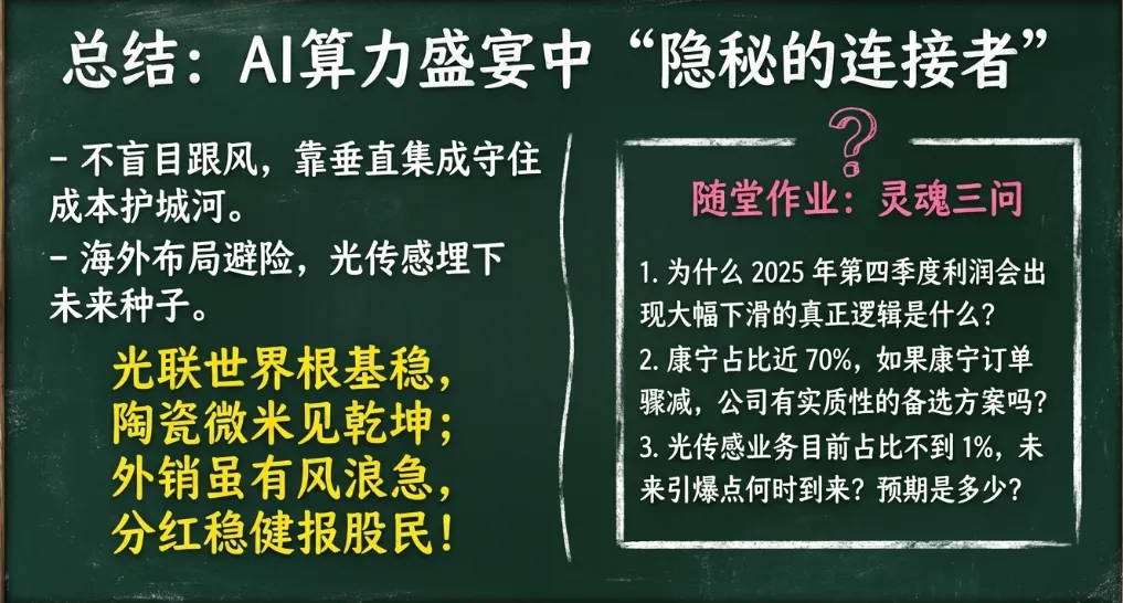 它不像光模块厂商那样处于风暴中心,但它提供的每一个陶瓷插芯、每一根MPO光纤跳线,都是AI算力能够跑起来的前提。2025年的年报,折射出一家成熟企业在面对AI诱惑时的冷静:不盲目跟风,通过垂直集成守住成本护城河,利用海外布局规避大环境震荡,同时在光传感领域埋下未来的种子。
