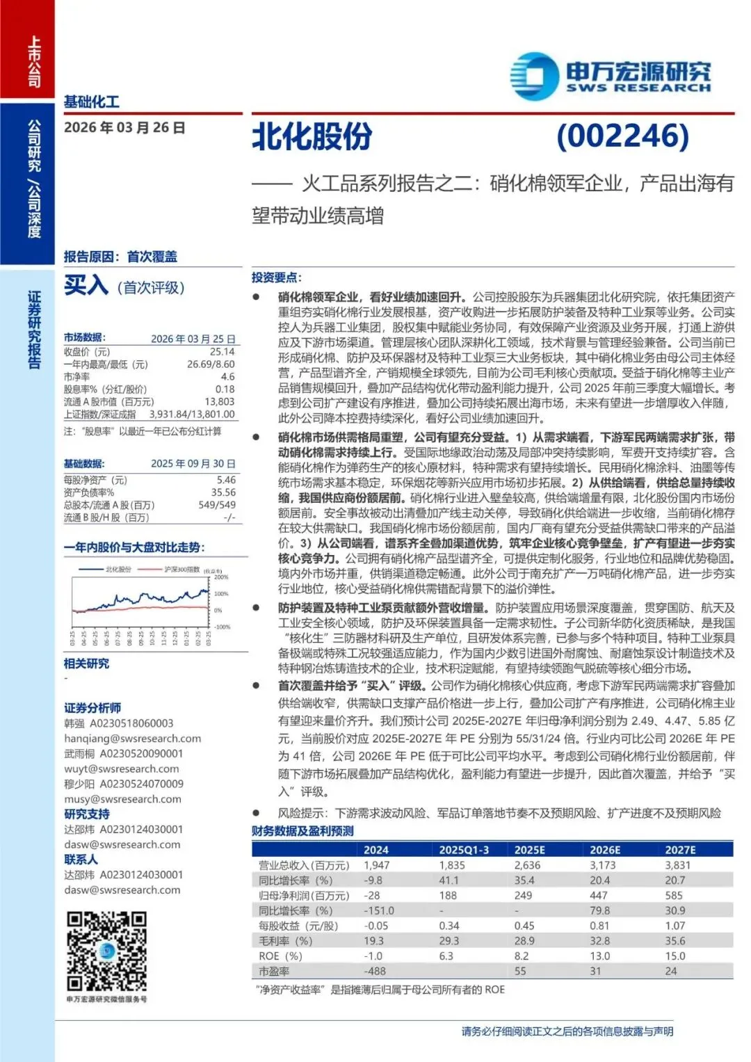回复暗号:北化股份(002246)火工品系列报告之二:硝化棉领军企业,产品出海有望带动业绩高增-260326-申万宏源-25页