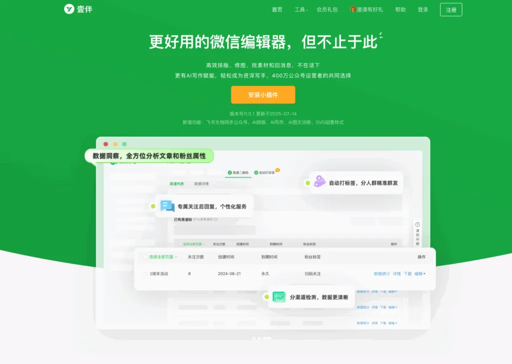 | 追求全流程效率的严肃创作者 | 壹伴AI编辑器 | 唯一覆盖”AI辅助-排版-发布-数据分析-移动办公”全链路的解决方案 |