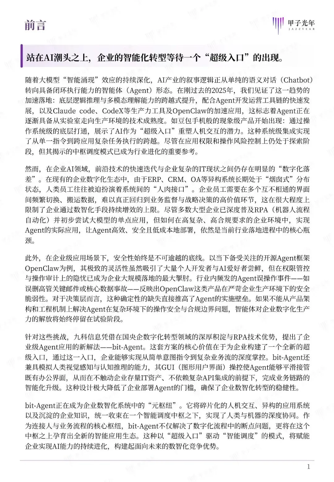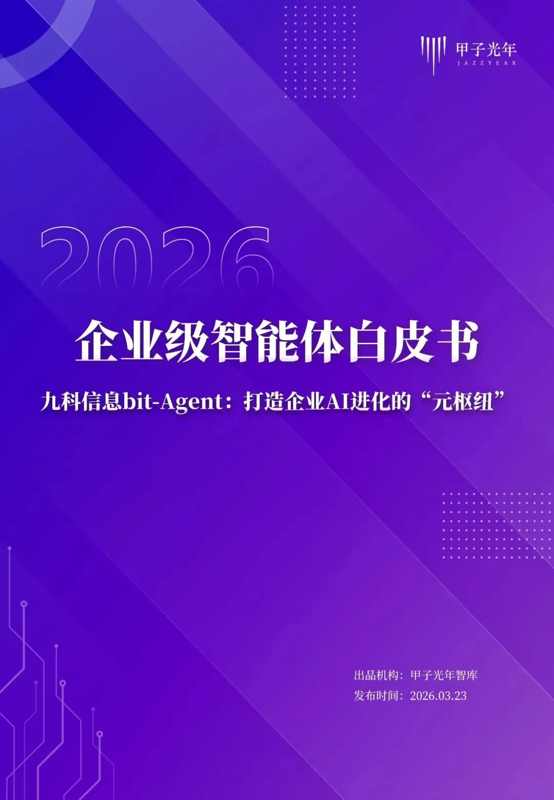 今天直接给大家分享一份重磅文件——由甲子光年智库刚刚发布的《2026企业级智能体白皮书:打造企业AI进化的“元枢纽”》 。