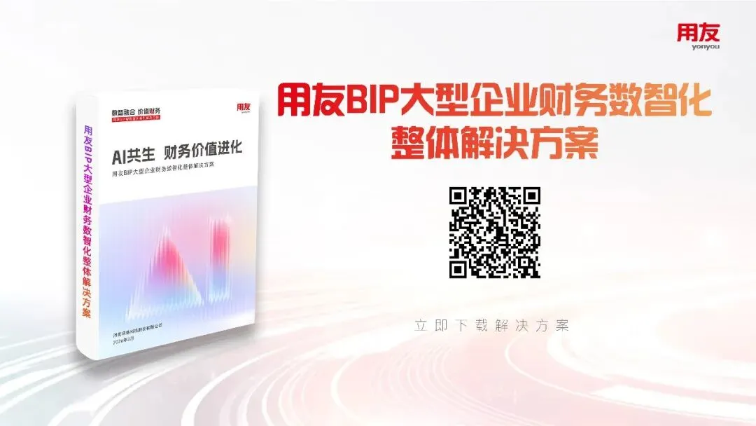 《用友BIP大型企业财务数智化整体解决方案》:聚焦业财融合、财务共享、智能会计、管理会计等核心系统建设,提供全流程的解决方案和实操方法,包含系统架构、功能设计、落地步骤、案例解析等内容,助力企业快速搭建财务数智化管理体系。