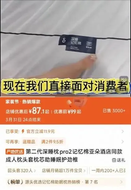 目前,亚朵的深睡枕PRO市场价格在300元左右,但是淘宝上的平替只需不到90元,甚至有些厂家还打着“亚朵代工厂直发”的名义直接进行售卖。