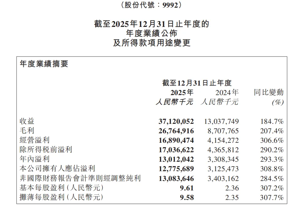 如果你在2024年底问任何一位消费品行业的分析师,哪家中国品牌有可能在一年内把收入翻接近三倍,大概没有人会第一个说出泡泡玛特。2025年,泡泡玛特实现总收入人民币371.2亿元,同比增长184.7%;经营利润达168.9亿元,同比增长306.6%;归母净利润127.8亿元,同比增长308.8%。毛利率从2024年的66.8%进一步提升至72.1%,非国际财务报告准则调整后净利润率达到35.2%,这个数字放在任何一个消费品品类里都属于顶级水平。更值得关注的是,这次增长不是靠烧钱买来的。泡泡玛特截至2025年12月31日没有任何银行借款,现金及现金等价物高达137.8亿元,较上年增加近一倍。一家市值在快速增长的公司,账上还趴着如此规模的现金储备,这在消费品行业里是相当罕见的财务健康状态。收入从130亿到371亿,这一年泡泡玛特经历了什么先把核心财务数据摆出来:2025年全年收入371.2亿元,2024年是130.4亿元。一年净增240.8亿元,增速184.7%。这个增速,已经不能用"快速增长"来描述,更准确的词是"爆发"。从利润结构来看,这次爆发的质量相当高。毛利率72.1%,较上年提升5.3个百分点,在一个依赖实物商品销售的品牌里,这个毛利水平接近于软件公司的盈利结构。经营利润率达到45.5%,意味着公司每收入100元,就有45元转化为经营利润。费用端的表现同样值得关注。经销及销售开支从36.5亿元增长至80.8亿元,绝对金额增长了一倍多,但占收入的比例从28.0%下降至21.8%,这说明规模效应在发挥作用——业务规模扩大了,但每赚一块钱所需要的销售费用在下降。一般及行政开支占比也从7.3%降至4.8%。从地理分布看,海外业务的爆发是这份财报最大的结构性变化。2024年,泡泡玛特海外收入(不含港澳台)约41.5亿元,占总收入31.8%。2025年,海外收入达到162.7亿元,占比跃升至43.8%,同比增长高达291.9%。其中美洲市场的表现尤为惊人——从8.0亿元增长至68.1亿元,同比增长748.4%,一年之内规模扩大了接近8.5倍。欧洲及其他地区从2.4亿元增长至14.5亿元,增长506.3%。从中国市场本身来看,收入从88.9亿元增长至208.5亿元,同比增长134.6%,增速依然强劲,但已经明显慢于海外市场。这个结构告诉我们:推动2025年业绩爆发的核心驱动力,是海外市场,而不是中国市场的进一步渗透。产品结构也发生了根本性的改变。毛绒类产品从2024年的28.3亿元增长至2025年的187.1亿元,同比增长560.6%,占总收入比例从21.7%跃升至50.4%,首次超过手办成为最大品类。毛绒产品的爆发,与THE MONSTERS(尤其是LABUBU系列)在全球社交媒体上的病毒式传播高度相关。会员数据同样强劲。截至2025年12月31日,中国内地累计注册会员从4608万人增长至7258万人,净增2650万人;会员贡献销售额占比93.7%;会员复购率(购买2次及以上的比例)达55.7%。为什么THE MONSTERS和毛绒产品同时爆发?从一只玩具到一个全球文化符号,LABUBU做对了什么2025年泡泡玛特最重要的业务亮点,可以用一句话概括:THE MONSTERS家族在成立十周年之际,成功跻身全球百亿IP,LABUBU成为年度全球最具热度的潮玩IP之一。THE MONSTERS在2025年实现收入141.6亿元,同比增长365.7%,占全集团总收入38.1%。一个IP贡献了整个公司超过三分之一的收入,这种高度集中的IP贡献结构,在潮玩行业里是极为罕见的。为什么是THE MONSTERS,而不是其他IP?从产品层面来看,毛绒产品的物理属性与THE MONSTERS的IP形象存在天然的适配性:LABUBU的不规则牙齿、毛绒质感的森林精灵形象,在毛绒载体上的表现力远超手办。毛绒产品的可展示性、可搭配性(挂包、装饰)、以及价格门槛相对较低(比大型MEGA系列更容易被尝试购买),共同构成了它在全球市场快速扩散的产品基础。从传播逻辑来看,LABUBU是近年来极少数真正完成了从"玩具"到"社交货币"跃迁的IP。当名人被拍到携带LABUBU毛绒挂件出行,它就不再只是一个玩具,而成为了一种可被识别的审美态度的表达。这种社交货币属性,是任何广告费都买不来的——它是产品本身在特定文化圈层里完成自我传播的结果。美洲市场的748%增速,是财报里最值得放大来看的数字之一。美洲2025年收入68.1亿元,2024年只有8.0亿元。如果把这个数字换算成人民币的绝对增量,一年内美洲市场增加了60亿元收入,相当于2024年泡泡玛特全集团收入的46%。驱动这个增速的,是两个同步发生的事情:线下门店从22家扩张到64家(净增42家),以及自研APP和官网的线上渠道爆发。美洲线上收入从3.6亿元增长至43.5亿元,增速1094.9%,其中自研APP及官网收入增速高达1395.4%。这组数据告诉我们:泡泡玛特在美洲市场的增长,不只是靠开更多门店,而是靠数字化渠道在大规模获客后实现了高效转化。自研APP的全球化布局,正在成为泡泡玛特建立直接用户关系的核心基础设施。毛利率从66.8%提升至72.1%,背后的逻辑值得关注。公司在财报中明确说明了毛利率提升的两个来源:一是海外销售占比提升(海外产品的定价溢价高于中国市场);二是柔性供应链策略,通过集中向核心供应商采购来压缩采购成本。这两个原因合在一起,说明泡泡玛特的商业模型正在形成一个正向的规模循环:全球销量越大,对核心供应商的议价能力越强,制造成本越低;同时,海外市场的高溢价定价能力,又进一步拉高了整体毛利率水平。IP平台、主题乐园与全球化:一家潮玩公司的三个未来方向读完这份财报,最值得思考的问题是:这家公司的天花板在哪里?从管理层的战略表态和资金使用计划来看,泡泡玛特给