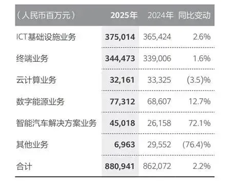终端业务收入3444.73亿元,同比增长1.6%,在手机出货量尚未回归历史峰值的情况下,依靠高端化与全场景策略实现了高质量复苏,不再依赖规模走量支撑增长。