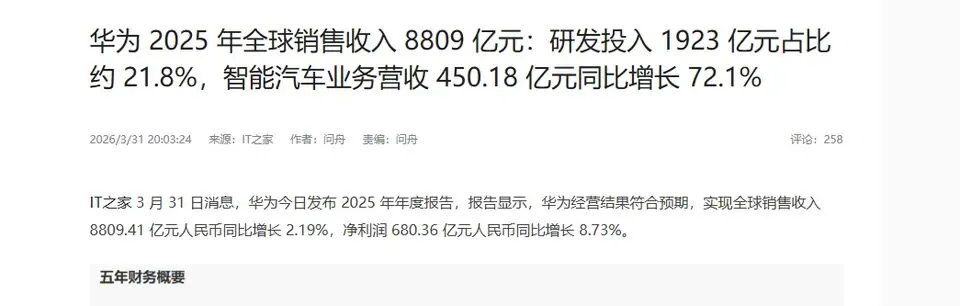 细读华为2025年财报,智能汽车业务暴涨,整体稳中有升