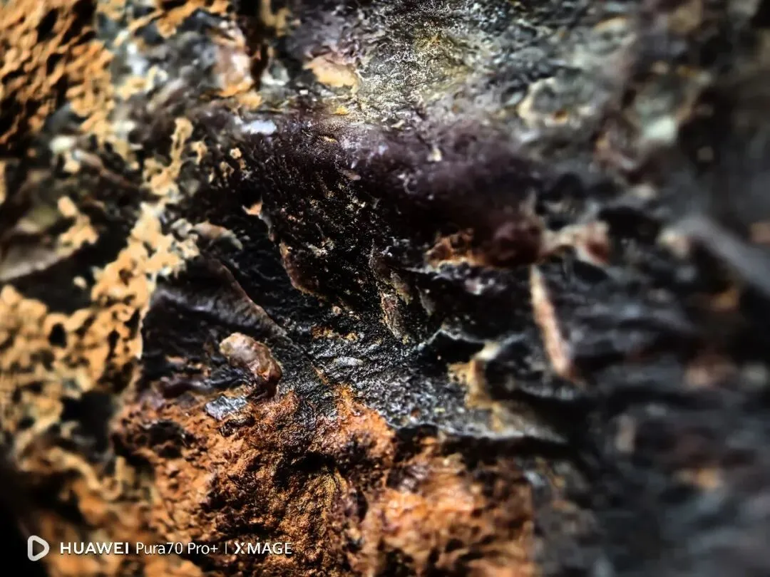 图九:陨石底部月壤与角砾岩和碎屑岩高温热熔的局部特写镜头。