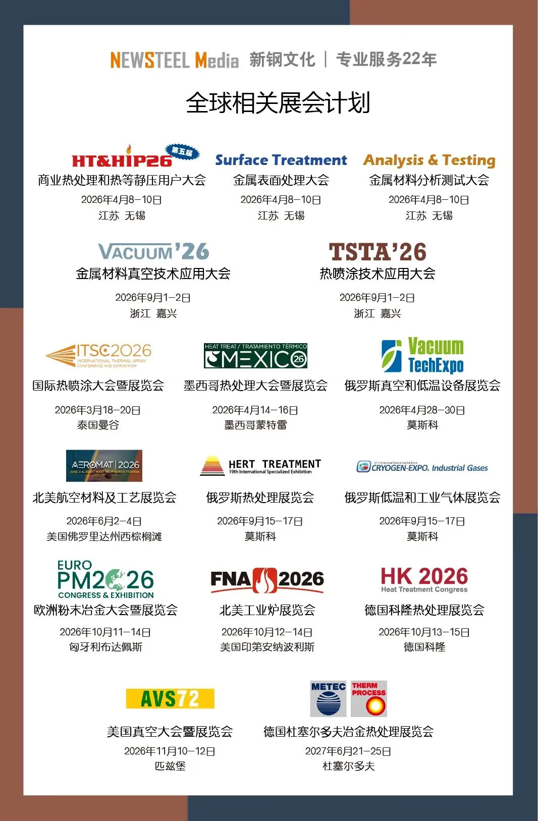 全部议程表发布 | 2026年第五届(无锡)商业热处理、热等静压、金属表面处理、金属材料分析测试、轴承材料及热处理、液冷板先进制造大会