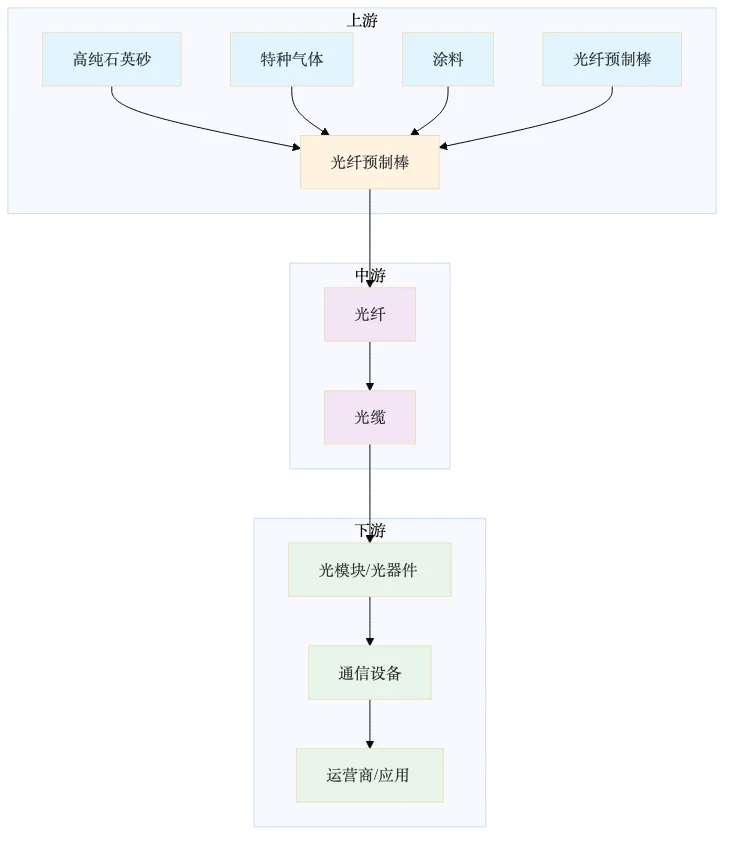 图:光纤产业链结构全景图(上游→中游→下游)