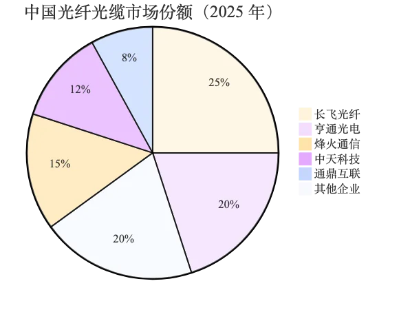 图:2025 年中国光纤光缆市场份额对比(长飞光纤 25% 领先)