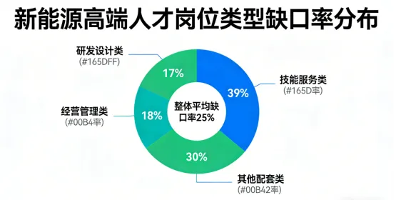 从新能源全产业维度看,2025年行业人才总需求将达1050万人,实际有效供给不足800万人,总量缺口超250万人;其中高端人才缺口尤为突出,高级研发工程师、高级技师等高端技能人才需求约45万人,实际供给仅15万人,缺口率高达66.7%,成为制约产业技术升级的核心瓶颈。