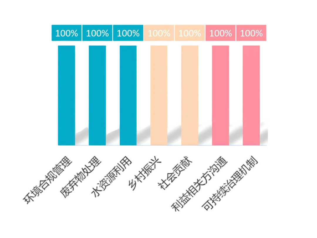 《报告》系统披露了有色金属行业勘察、设计、施工、装备领域核心指标的81.20%,其中环境维度下环境合规管理、废弃物处理、水资源利用,社会维度下乡村振兴、社会贡献,治理维度下利益相关方沟通、可持续治理机制等议题的核心指标覆盖率最高,均达100%。