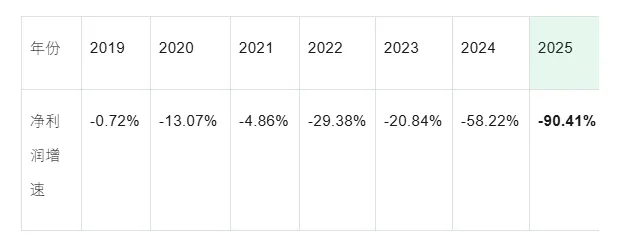 大亚圣象的颓势呈现加速恶化态势,归母净利润已连续七年下滑,根据同花顺金融数据库核实,2025年公司归母净利润为1333.70万元,经营现金流净额为-3454.76万元,与原报告数据基本一致,进一步印证了业绩恶化的严峻性: