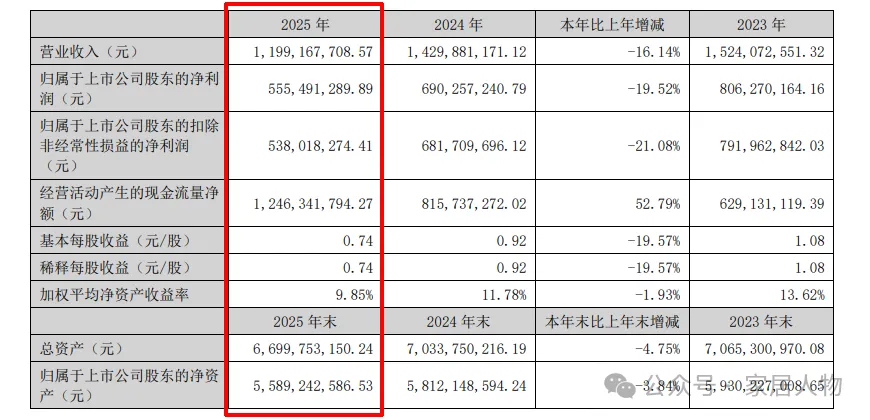 3月25日,北新集团建材股份有限公司(简称“北新建材”)发布2025年年度报告。报告显示,北新建材2025年实现营业收入252.80亿元,同比减少2.09%;净利润29.06亿元,同比减少20.31%。