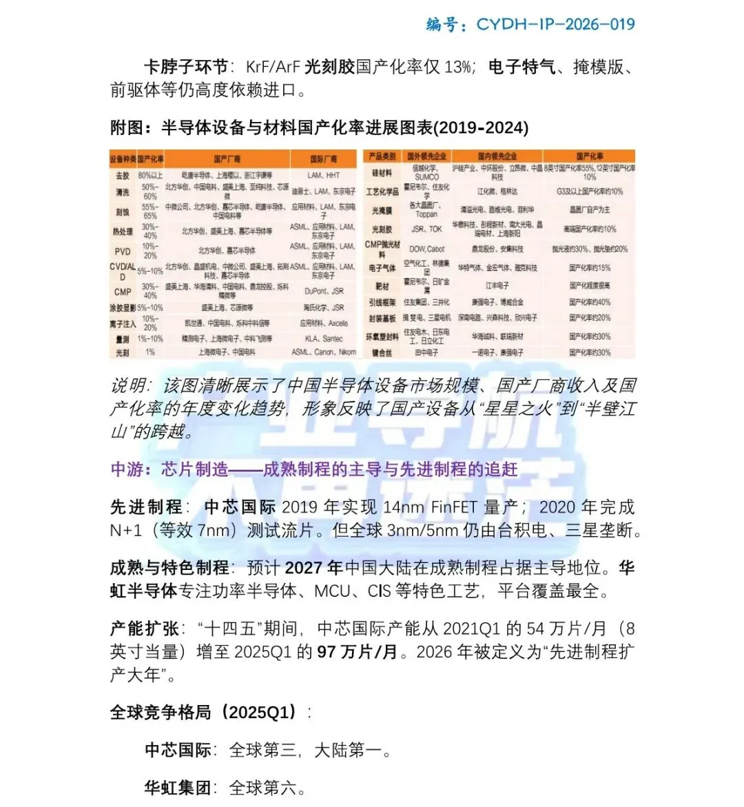 视线来到半导体产业的中下游,中国企业的技术追赶与产能扩张同样波澜壮阔。