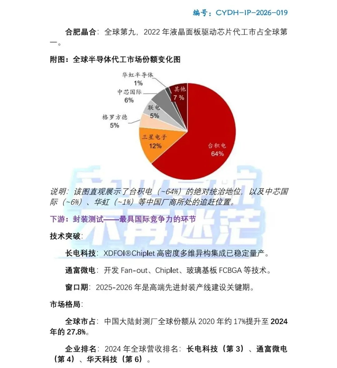 以上的核心梳理,仅仅是这部深度报告的冰山一角。面对台积电占据全球代工市场超64%的绝对统治地位、三星紧随其后的“一超多强”格局,中国半导体企业究竟该如何在夹缝中突围?在即将到来的2026-2030年,Chiplet先进封装、第三代半导体等新兴赛道又将孕育哪些百倍的投资机会?