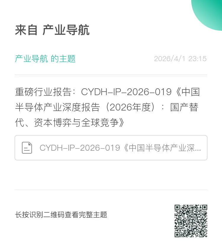 我诚挚地邀请大家加入我们产业导航的“知识星球”。在星球内,你不仅可以免费下载完整版的《中国半导体产业深度报告(2026年度)》PDF原件,还能持续获取我们团队针对各大部委最新产业政策、项目申报指南的第一时间权威解读。