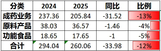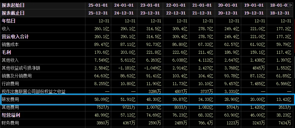 2025年,营收260.06亿元,同比下滑10.04%,股东利润38.82亿元,同比下滑10.3%,营收和利润都是双位数下滑。