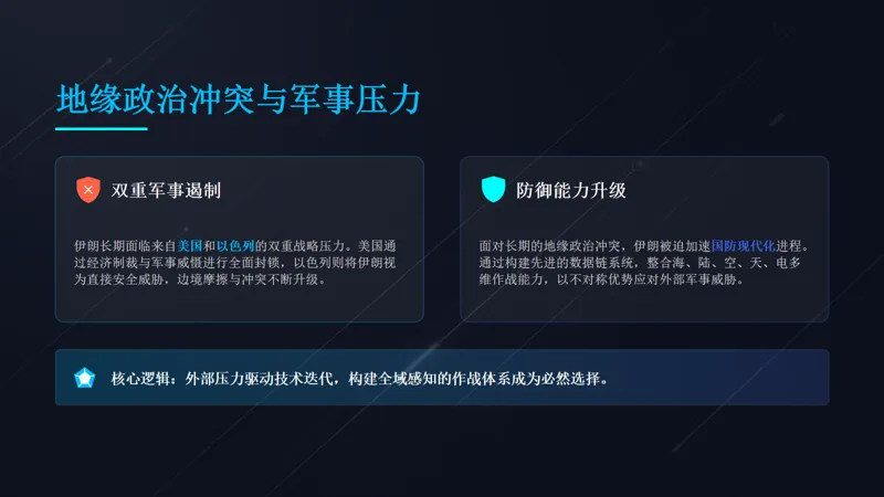 在当今复杂多变的国际军事格局中,中东地区始终处于地缘政治冲突的核心地带。伊朗,作为中东地区的关键力量,长期面临来自外部,尤其是以美国为首的军事压力与战略围堵。美国凭借其强大的军事力量,在中东地区维持着大量军事存在,并联合盟友对伊朗实施多方面的战略遏制,包括军事威慑、经济制裁以及政治孤立。在此背景下,伊朗为了维护自身国家安全与主权独立,急需构建一套高效且具有韧性的军事作战体系。