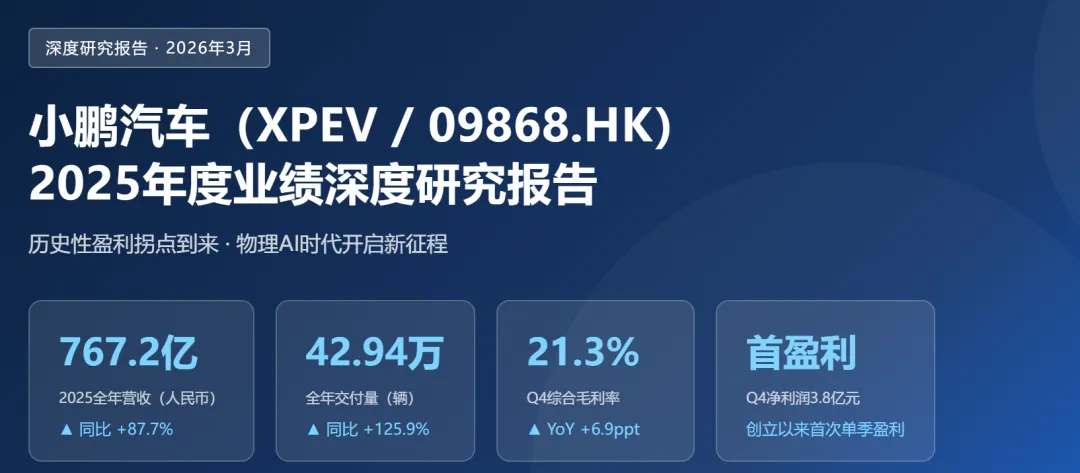 ? 历史性盈利拐点:2025年第四季度,小鹏汽车实现净利润3.83亿元,创立12年来首次单季度盈利,标志着公司商业模式从"烧钱换增长"向"技术驱动盈利"的根本性转变。