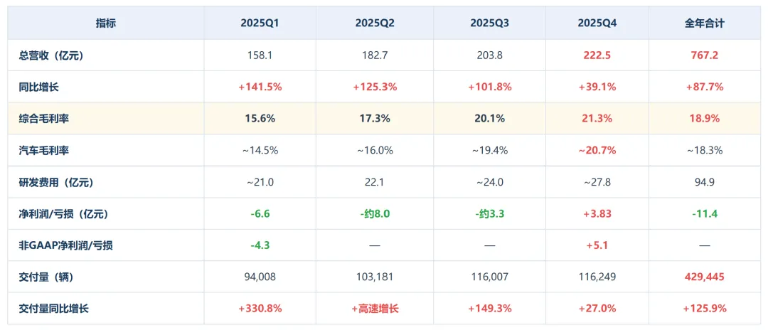 ? 毛利率持续改善:全年综合毛利率18.9%(+4.6ppt),Q4毛利率达21.3%,据悉已超越特斯拉同期水平。规模效应叠加供应链降本,单车盈利质量大幅提升。