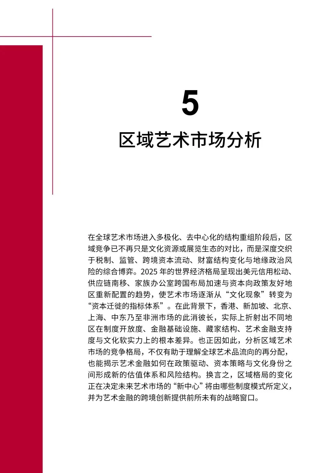 全球艺术市场从单一中心走向多极竞合:香港凭借自由港与金融优势稳固亚洲枢纽地位,新加坡依托政策与家族办公室集聚快速崛起;北京主导拍卖市场,上海以一级市场与数字艺术构建完整生态;中东、非洲成为新兴增量板块,全球艺术版图形成网络化、多中心的全新格局。