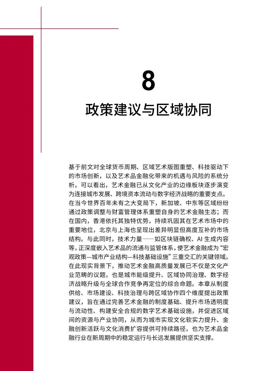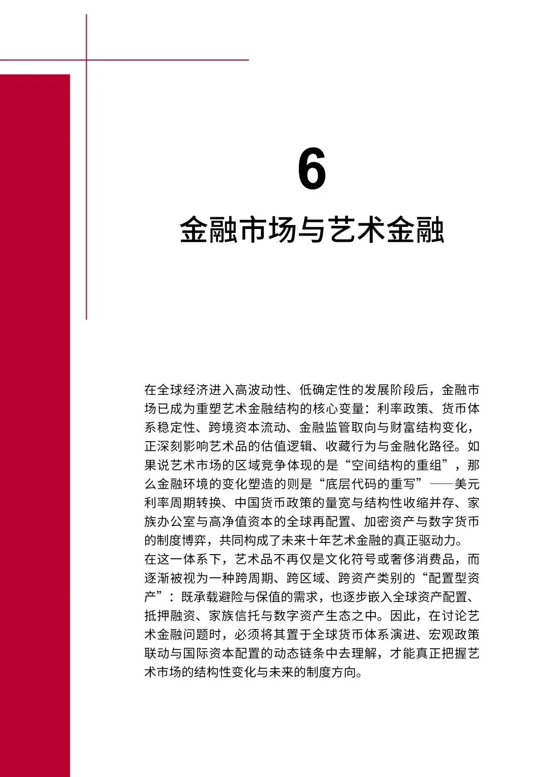 全球货币政策动荡重塑艺术金融底层逻辑:艺术品资产配置从增值导向转向风险对冲,成为家族办公室、高净值人群核心另类配置。艺术品金融化快速推进,同时伴随泡沫、欺诈等风险,全球监管框架加速完善;加密货币与数字人民币试点并行,合规化成为艺术品金融创新的核心方向。第七章