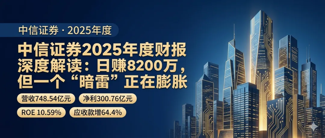 总结一下: 中信证券2025年交出了一份利润丰硕、现金充沛的顶级财报,彰显了“券商一哥”的深厚内功。但与此同时,资产负债表上急速膨胀的应收款项,如同一道醒目的伤疤,提醒我们盛宴之下亦有隐忧。对于投资者而言,这不再是一个可以闭着眼睛买入的“指数基金”,而是一个需要仔细甄别其风险管控能力的复杂标的。