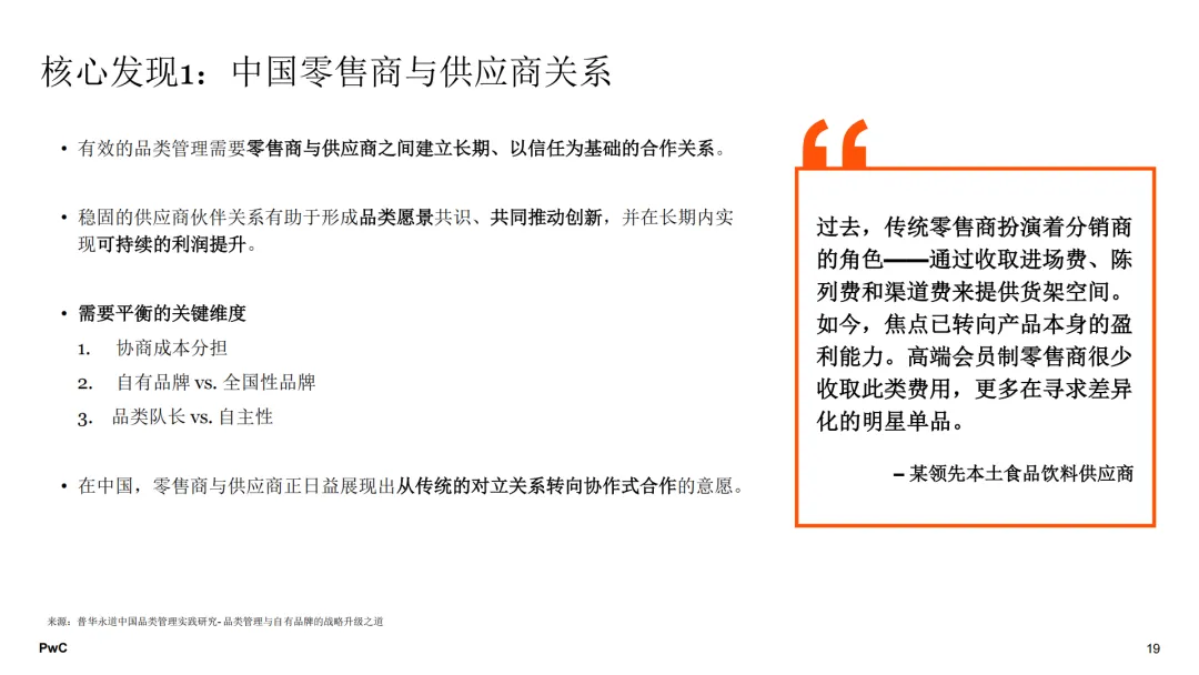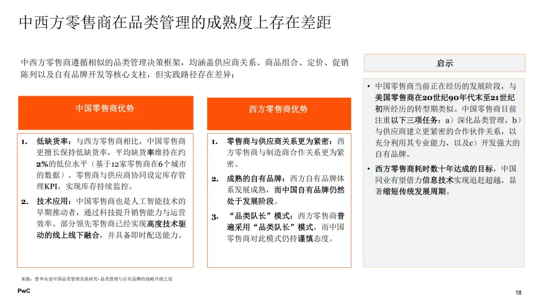 自有品牌潜力与品类管理升级:相比欧美(自有品牌渗透率约20-38%),中国自有品牌占比仅约5%,发展空间巨大。报告指出,通过深化品类管理、加强供应商合作、引入“品类队长”模式,可提升差异化与盈利能力。